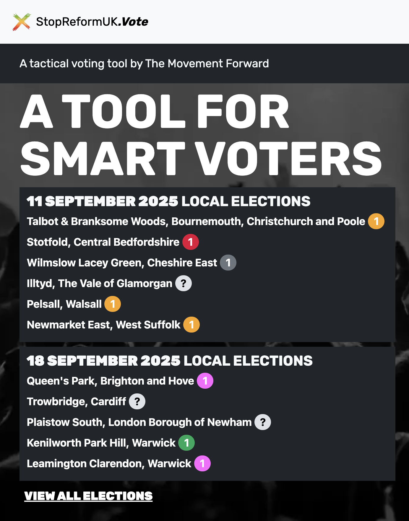 There are local council by-elections every week and just a handful of tactical votes in them could beat Reform, keeping them out of our councils.